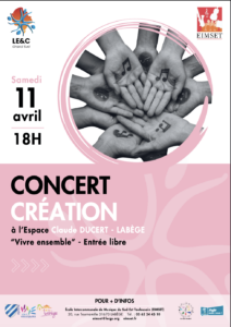 Concert création samedi 11 avril à 18h à l’Espace Claude Ducert à Labège.